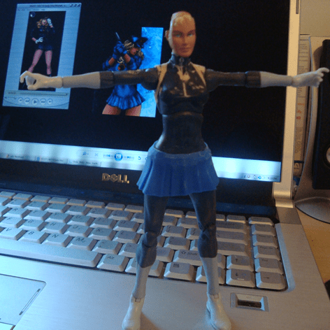 I used a ML Sharon Carter body, DCUC Supergirl head and skirt, some hair from some ML chick, and the rest is sculpt. Finished her off with a custom paint job, and volare!