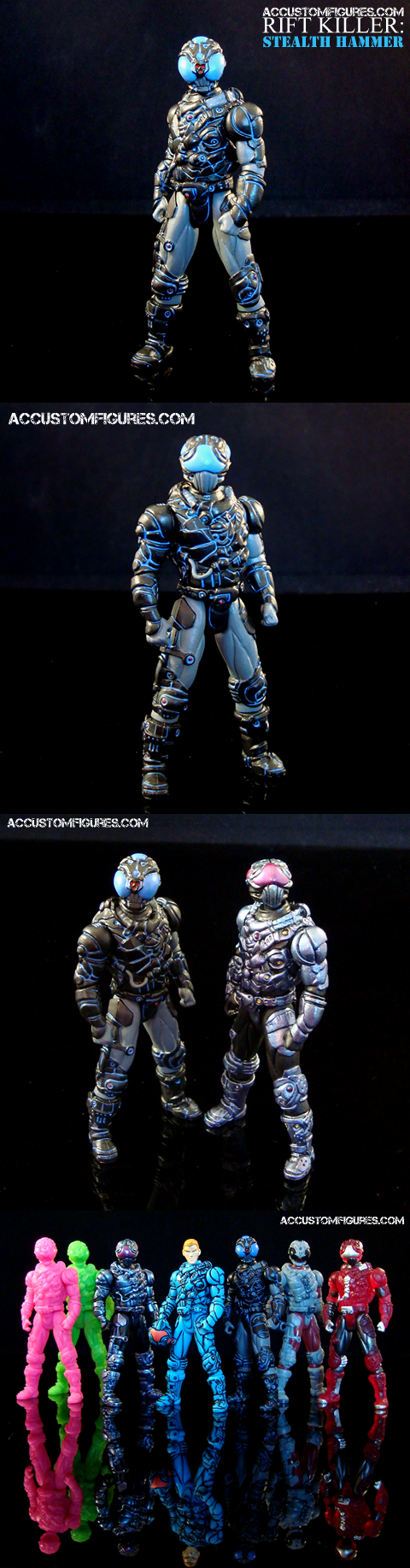 Little is known about the Rift Killers other than they are single celled organisms laying dormant in space. They form bipedal suits around them made of space trash in order to manipulate their environment. They sleep peacefully, but when awoken they are ruthless and violent beings, and something or someone has lead them to earth! Stealth Hammer specializes in infiltration and espionage.