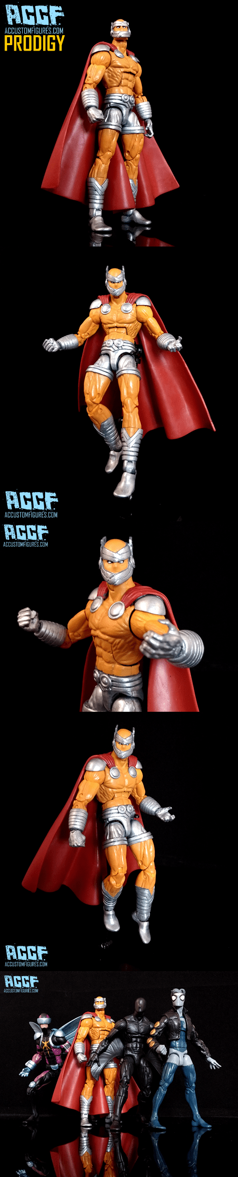 Prodigy was made from a Bucky Cap base, Spiderman feet, Iron Fist hands, Ronin head, and a Movie Superman cape. His suit is made of tons of sculpted detail, and wrapped up in a trademark ACCF metallic and matte paint job. Enjoy!