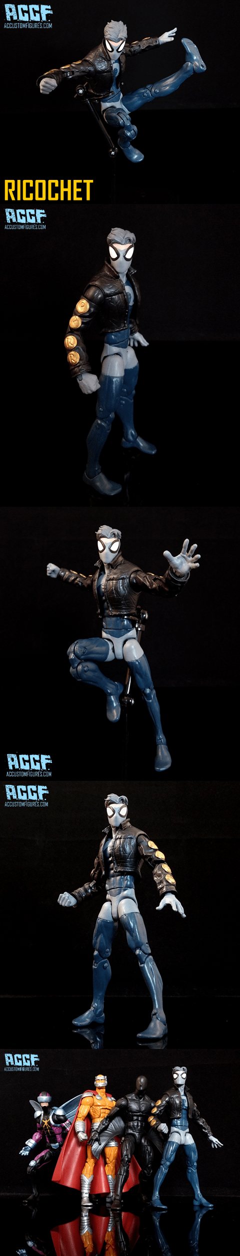 Ricochet was made from a Spiderman base, hands and head, with Nick Fury arms, and a Xorn jacket. His hair and jacket details are sculpted. He is finished with an ACCF paint job. Enjoy!
