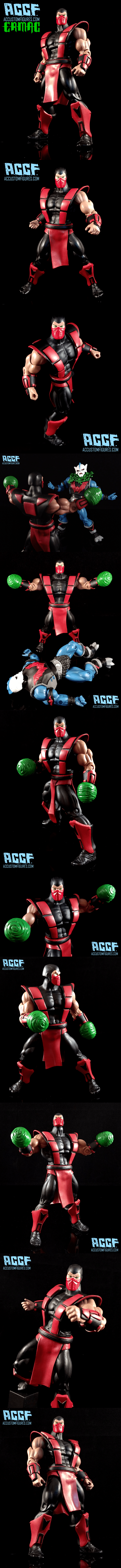 Ermac was made from a MOTUC Dragstor base, He-Men arms, Vikor armor, and a MK Scorpion head base. He features tons of sculpted detail including his armor from top to bottom, his alternate hands and head. He was inspired by the Jin Saotome figure, and is wrapped up in a trademark ACCF MK paint job. Enjoy!